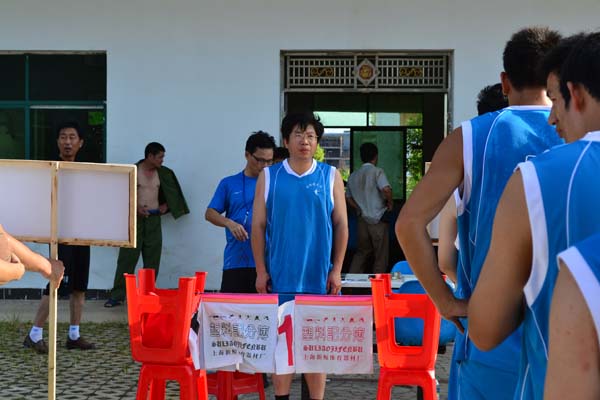 金灘鎮(zhèn)黨委書記京海華宣布“江西水建杯”籃球賽開始