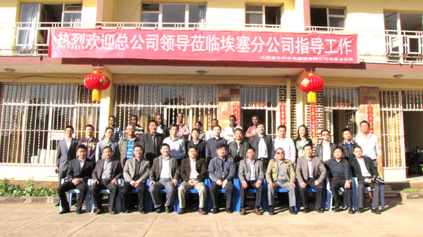 2013年2月12日,農(nóng)歷大年初三,新春伊始,公司董事長、總經(jīng)理王元旦率領(lǐng)部分高層管理人員和部分部門負(fù)責(zé)人一行13人來到埃塞俄比亞,給埃塞分公司員工帶來了新春的祝福和慰問,并現(xiàn)場召開了“江西省水利水電建設(shè)有限公司海外工作會議”,會議由張周平副總經(jīng)理主持。