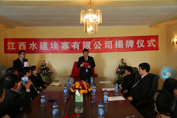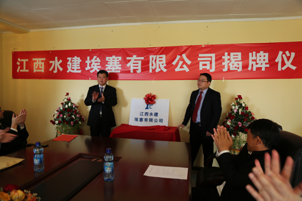 2015年4月26日埃塞當地時間上午10點,江西水建埃塞有限公司在埃塞舉行揭牌儀式。公司董事長王元旦、總經理徐洪良、副總經理兼海外公司執(zhí)行董事張周平、副總經理兼海外公司總經理黃鄭民、副總經理王俊華等領導及在埃員工參加了揭牌儀式,公司董事長王元旦和埃塞有限公司總經理王毓平共同為埃塞公司揭牌并致辭。