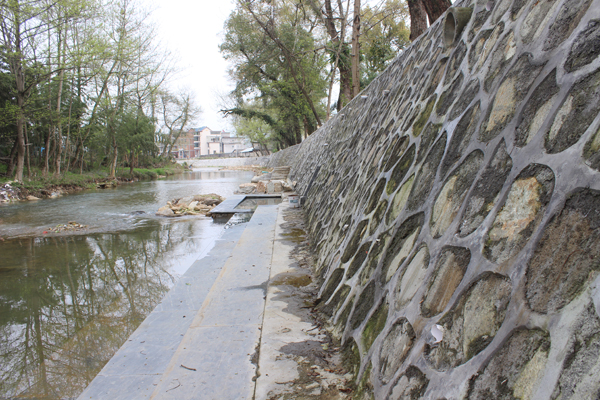 玉山縣樟村鎮(zhèn)防洪工程的施工主要內(nèi)容有:堤身土方填筑;左、右岸堤身防護(hù)(埋石砼防洪墻、干砌石護(hù)坡、漿砌石護(hù)坡、草皮護(hù)坡)、河道疏浚、涵閘及交通橋拆除重建等四座建筑物改建工程。