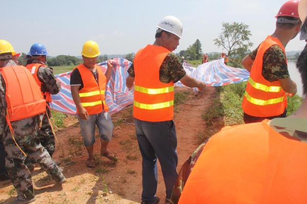 為檢驗(yàn)和考核我公司制定的《防汛應(yīng)急預(yù)案》的科學(xué)性、可操作性,同時(shí)檢驗(yàn)公司應(yīng)急救援組織及全體成員的實(shí)際應(yīng)急能力。2016年6月14日,公司結(jié)合2016“安全生產(chǎn)月”活動(dòng)及貴溪市新田聯(lián)圩防洪工程施工項(xiàng)目部在建工程防洪度汛的施工安排,在貴溪市新田聯(lián)圩防洪工程施工項(xiàng)目部舉行了防汛應(yīng)急預(yù)案演練。