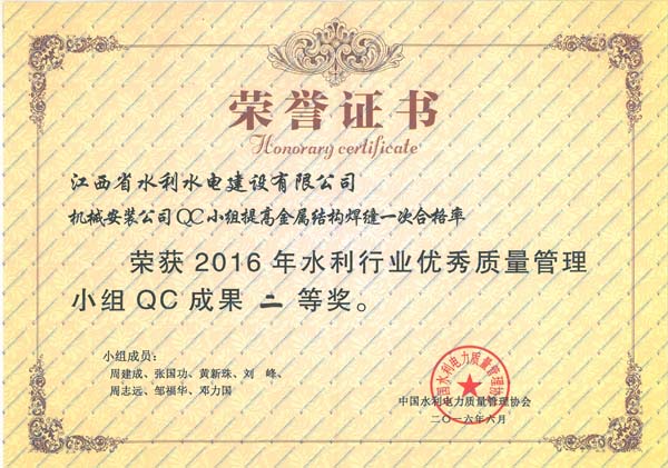 集團(tuán)資訊2016年6月20日至24日,中國水利電力質(zhì)量管理協(xié)會(huì)水利分會(huì)在安徽省安慶市,舉辦了2016年水利行業(yè)優(yōu)秀質(zhì)量管理小組成果發(fā)表會(huì),并在本次發(fā)表會(huì)上發(fā)布了156項(xiàng)QC成果。中國水利電力質(zhì)量管理協(xié)會(huì)水利分會(huì)組織評(píng)審專家,對(duì)發(fā)表的QC成果進(jìn)行了現(xiàn)場評(píng)審,對(duì)經(jīng)評(píng)審獲得一、二等獎(jiǎng)的單位進(jìn)行了表彰。本次成果發(fā)表會(huì)上,我公司共有3項(xiàng)QC成果獲一等獎(jiǎng),兩項(xiàng)QC成果獲二等獎(jiǎng),成績較往年有較大幅度提高。