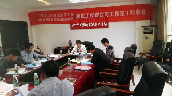 2017年4月19日蘆溪縣五河治理防洪工程項目部在蘆溪縣主持召開了江西省五河治理防洪工程蘆溪縣袁河宣風(fēng)鎮(zhèn)段防洪項目單位工程暨合同工程完工驗收會議。蘆溪縣五河治理防洪工程項目部、江西省水利規(guī)劃設(shè)計研究院、江西省建洪工程監(jiān)理咨詢有限公司、江西省水利水電建設(shè)有限公司、蘆溪縣宣風(fēng)鎮(zhèn)鎮(zhèn)人民政府和銀河鎮(zhèn)人民政府等單位代表參加了本次驗收會議,并成立了單位工程暨合同工程完工驗收工作組,萍鄉(xiāng)市水工程建設(shè)監(jiān)督管理站列席了本次會議。