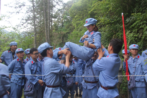 抵達(dá)井岡山后,全體人員立刻進(jìn)入三灣隊伍整編環(huán)節(jié),推薦隊長、政委和旗手,設(shè)計隊名、口號和LOGO。很快“飛龍隊”、“戰(zhàn)鷹隊” 等名字紛紛閃亮登場。“龍征萬里,所向披靡”、“ 群狼行千里,星火可燎原”等口號一次又一次迎來全場的陣陣歡呼。隨后進(jìn)行了“穿越叢林、突破封鎖線、匍匐前進(jìn)、火線救援”4個比賽項目,這些比賽項目,增強了大家的團(tuán)隊意識,每名成員充分認(rèn)識到了團(tuán)結(jié)協(xié)作、友愛互助的重要性,使大家在比賽中受到啟發(fā)、受到鼓舞、更使大家得到了鍛煉,經(jīng)受了考驗。
