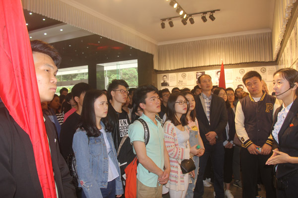 大家認(rèn)真聽取講解員講解革命烈士光榮事跡