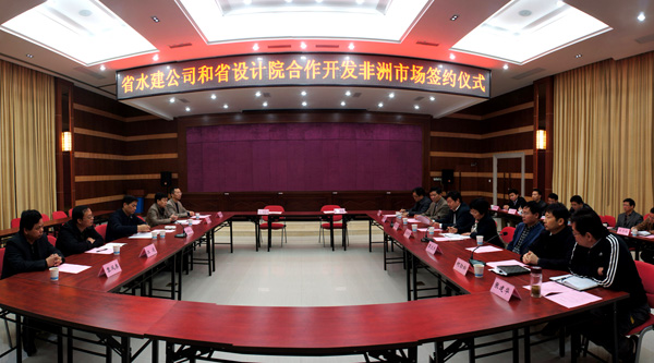 2013年11月13日,我公司與江西省水利規(guī)劃設計院合作開發(fā)非洲市場暨聯(lián)合成立“江西省水利規(guī)劃設計院埃塞俄比亞分院”簽約儀式在省水院會議中心舉行。江西省水利廳黨委書記、廳長孫曉山出席簽約儀式并作重要講話,我公司董事長兼總經(jīng)理王元旦、省水院院長孔俐麗分別致辭,并代表雙方簽訂戰(zhàn)略合作協(xié)議。