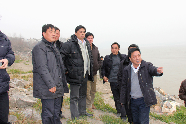 2011年1月14日,江西省水利廳廳長孫曉山在省河湖局、省水利規(guī)劃設(shè)計院相關(guān)領(lǐng)導、公司董事長總經(jīng)理王元旦等的陪同下,前往我司承建的長江九江段棉船堤應(yīng)急防滲工程視察工作。