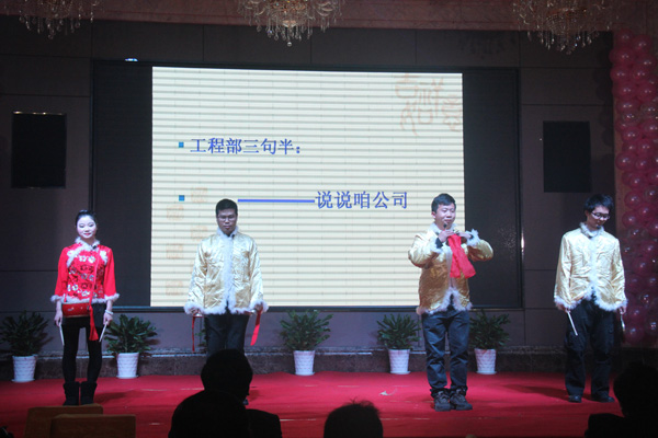 在隨后的新春聯(lián)歡會上,王總發(fā)表了熱情洋溢的新年賀詞,并代表公司董事會和領(lǐng)導班子,向全體員工、支持公司改革發(fā)展的離退休老同志和員工家屬,以及仍堅守在工作崗位的海內(nèi)外一線員工致以節(jié)日的祝福和誠摯的問候。王總在致詞中說,2013年是公司發(fā)展史上不平凡的一年,在公司董事會的正確領(lǐng)導下,全體員工以企業(yè)為家,團結(jié)一心、不畏艱難,腳踏實地、開拓創(chuàng)新,沿著年初制定的各項工作目標努力奮進。公司各項事業(yè)繼續(xù)保持蓬勃發(fā)展的良好形勢,朝著質(zhì)量好、品牌優(yōu)、市場廣的集團型企業(yè)方向邁進。2013年,公司開拓進取、勇于突破,準確定位、大膽決策,利用資本運作境內(nèi)外項目,以投融資帶動市場,在國內(nèi)嘗試承接BT項目,國外則跨行業(yè)進入投資領(lǐng)域,利用投資經(jīng)營提升企業(yè)競爭力。王總指出,公司在2013年取得了一系列優(yōu)秀的成績,兩項省級工法和兩項部級工法通過評審,內(nèi)部管理制度日益健全,爆破資質(zhì)、城市園林綠化資質(zhì)通過審核,在國際工程建設(shè)領(lǐng)域發(fā)展迅速,被譽為江西水利行業(yè)走向世界、開拓國際市場的排頭兵。