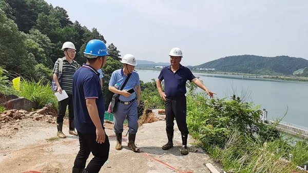 2020年7月29日上午,公司董事長王元旦一行深入江西省峽江水利樞紐工程右岸壩肩邊坡滑坡體處理工程查看在建情況。公司首席專家郭洪有、安全管理部經(jīng)理王海鵬陪同視察。