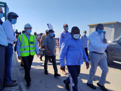 陪同總統(tǒng)參觀視察的還有總統(tǒng)府辦公廳主任、公共工程部部長(zhǎng)、馬普托省省長(zhǎng)、國(guó)家水務(wù)局局長(zhǎng)等,業(yè)主代表、世行代表、監(jiān)理代表、承包商代表和當(dāng)?shù)鼐用翊硪煌瑓⒓邮⒌?,莫桑比克?guó)家電視臺(tái)和主流平面媒體進(jìn)行了全程直播報(bào)道。