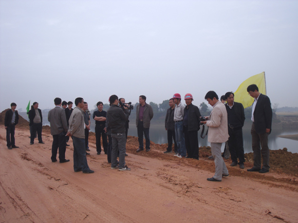 2011年11月18日,省水利廳文林副廳長(zhǎng)在上饒市水利局、萬年縣政府相關(guān)領(lǐng)導(dǎo)的陪同下,來到我司承建的鄱陽湖二期防洪工程第六個(gè)單項(xiàng)梓埠聯(lián)圩除險(xiǎn)加固工程萬年縣梓埠1標(biāo)視察指導(dǎo)工作。