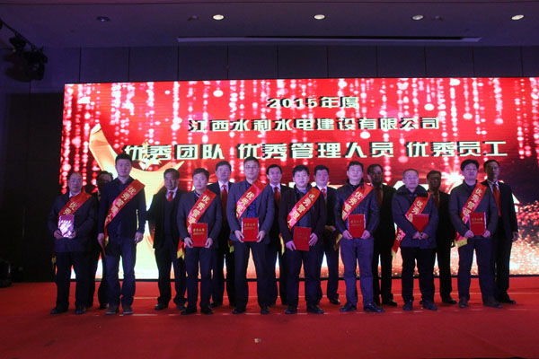 年會上,公司總經(jīng)理徐洪良宣讀了2015年優(yōu)秀團隊和先進個人表彰決定,并希望各單位和廣大員工以優(yōu)秀團隊和先進個人為榜樣,胸懷全局,銳意進取,立足改革,不斷創(chuàng)新,為江西水建燦爛的明天而努力奮斗!