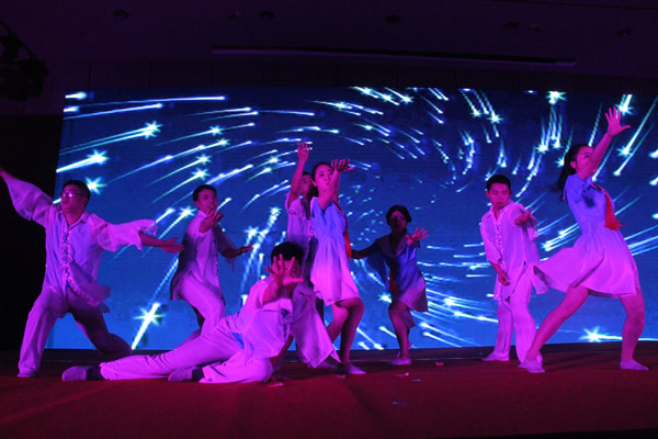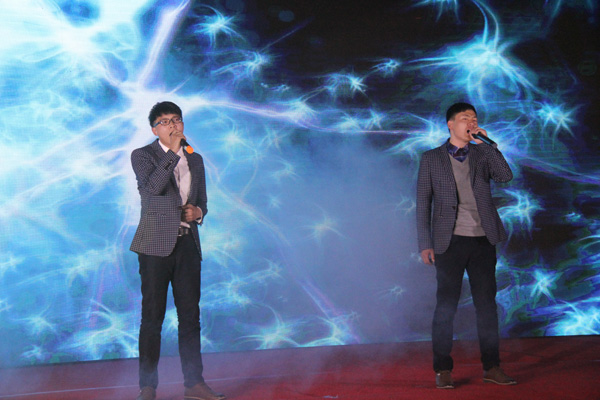 鮮紅的綢帶,迎來明媚的新春;火紅的笑臉,洋溢著節(jié)日的喜慶。隨后的文藝匯演在大合唱《新時代的水建人》中拉開帷幕,舞蹈,歌曲聯(lián)唱,雙簧,魔術(shù)等文藝節(jié)目先后上場,整場演出精彩絕倫,高潮迭起,掌聲和歡笑聲貫穿全場,現(xiàn)場成了一片歡樂的海洋。最后,公司高管登臺和大家一起同唱《團結(jié)就是力量》,一首《團結(jié)就是力量》把年會推向了高潮。團結(jié)是我們的力量之源,團結(jié)是企業(yè)騰飛的支點。同心山成玉,協(xié)力土變金。我們同是一顆心,同是一條根,同是水建人,讓我們團結(jié)起來,肩并著肩,手牽著手,用比鐵還硬、比鋼還強的磅礴力量,共同譜寫公司改革創(chuàng)新加快發(fā)展的嶄新篇章。