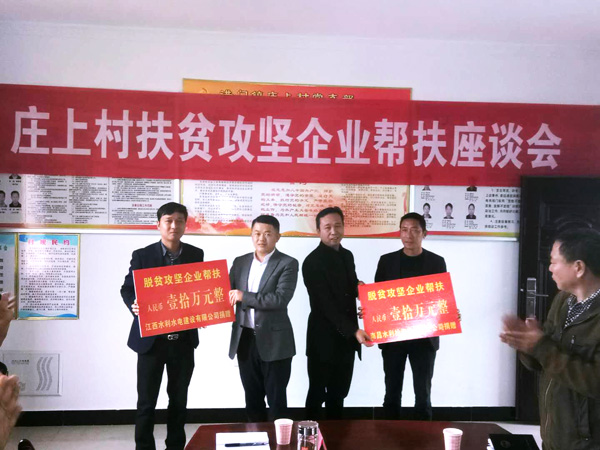 為認真貫徹落實黨的十九大關(guān)于堅決打贏脫貧攻堅戰(zhàn)的新部署新要求,踐行企業(yè)的社會責任。11月17日,公司副總經(jīng)理王俊華同志率撫州廖坊灌區(qū)二期工程施工總部負責人胡福民、項目財務(wù)部負責人肖志兵代表江西省水利水電建設(shè)有限公司前往南城縣洪門鎮(zhèn)參加莊上村扶貧攻堅企業(yè)幫扶座談會,并將公司捐助的10萬元扶貧資金送至莊上村村委會。